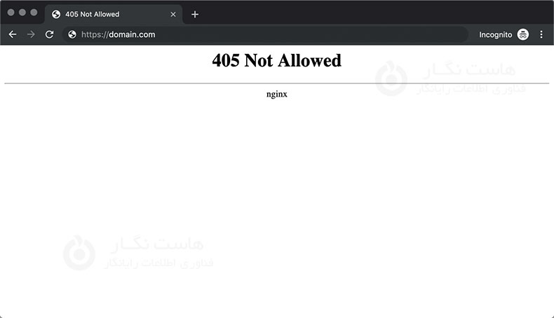 در این سناریو، وب سرور شما درخواست را دریافت کرده و تشخیص داده است، اما روش HTTP خاصی را که استفاده میکند رد کرده است. در عمل، این بدان معنی است که مرورگر نمی تواند به صفحه ای که درخواست کرده است دسترسی داشته باشد. بازدیدکنندگان سایت شما به جای محتوایی که به دنبال آن بودند، یک صفحه خطا را مشاهده خواهند کرد:
