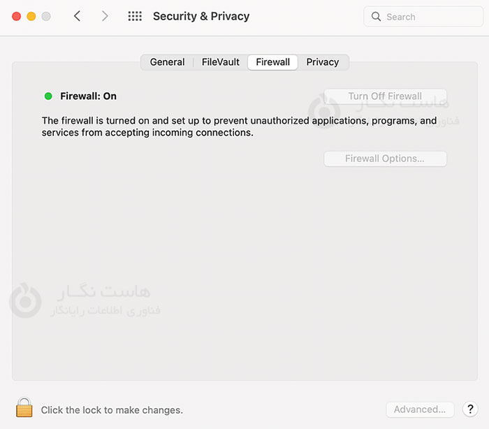 باز هم، این فرآیند به دستگاهی که استفاده می کنید بستگی دارد. برای انجام این کار در macOS، به System Preferences > Security & Privacy > Firewall بروید: