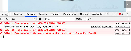 این منبع می تواند هر فایلی مانند یک تصویر، جاوا اسکریپت یا استایل شیت CSS باشد. خطا ممکن است پیام های مختلفی در کنار خود داشته باشد.