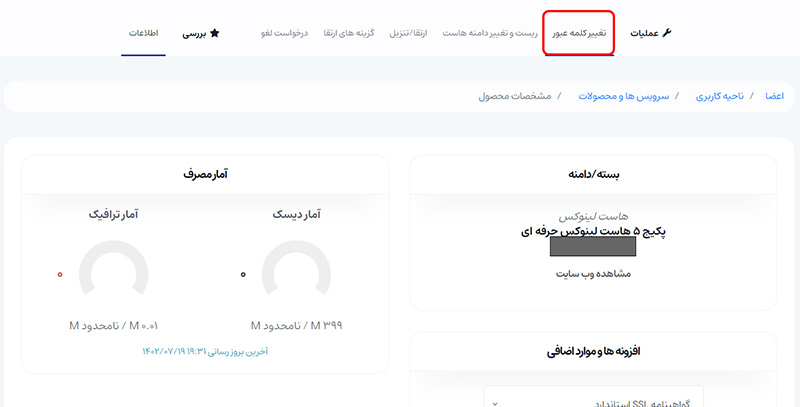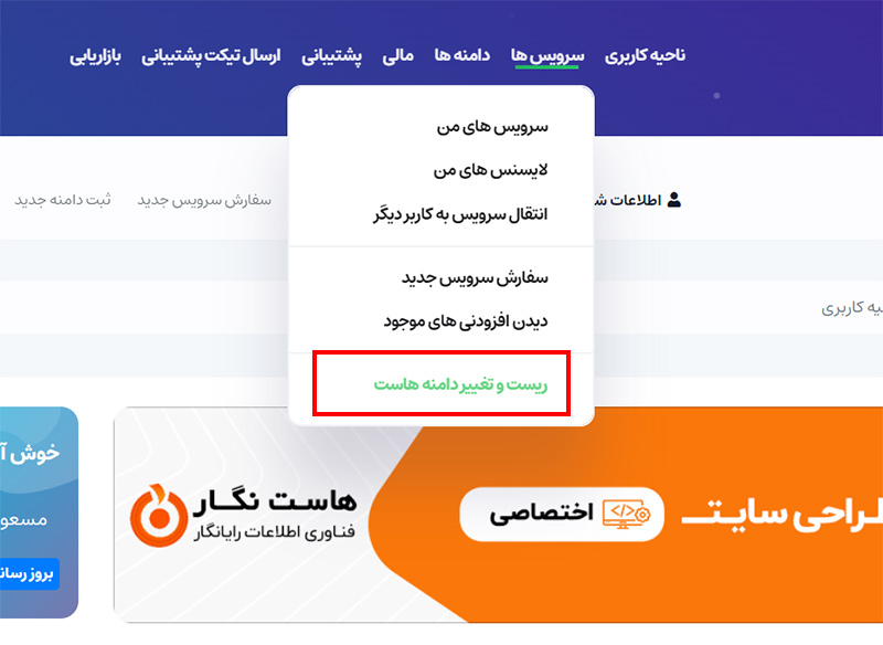 در صورتی که قصد تغییر دامنه، ریست و یا تغییر رمز عبور یکی از سرویس های خود را دارید، می توانید مراحل زیر را دنبال کنید :