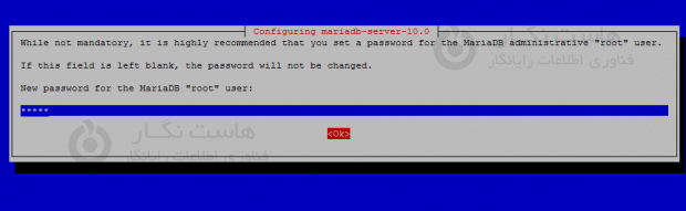4. در مرحله بعد پایگاه داده MariaDB و کتابخانه توسعه MySQL را از بسته های باینری نصب کنید. همانطور که MariaDB روی سیستم شما نصب می شود، از شما خواسته می شود که در حین نصب یک رمز عبور برای کاربر روت پایگاه داده تعیین کنید (فقط در دبیان). یک رمز عبور قوی انتخاب کنید، آن را تکرار کنید و منتظر بمانید تا نصب تمام شود.