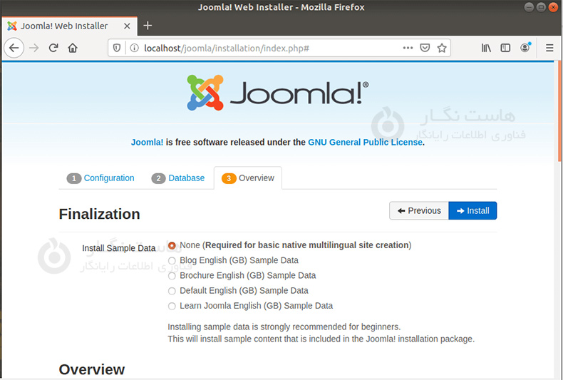 مرحله 7: نهایی کردن نصب جوملا در اوبونتو