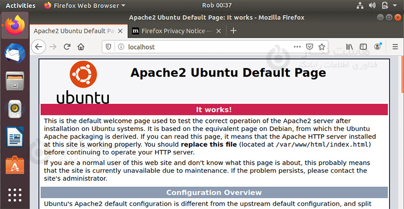شما باید یک صفحه وب در زیر دریافت کنید که نشان می دهد آپاچی نصب و اجرا شده است.