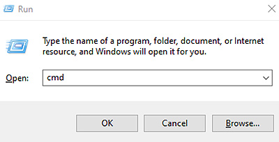برای دسترسی به Command Prompt ویندوز، Win + R را فشار دهید تا دستور Run بالا بیاید. cmd را تایپ کرده و oky را بزنید.
