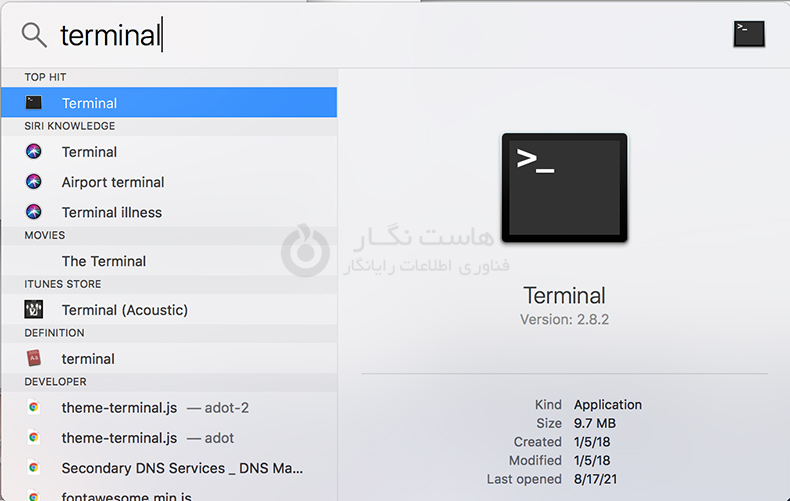 ترمینال را با استفاده از Spotlight Search یا با فشار دادن Command + Space باز کنید و سپس Terminal را تایپ کنید.