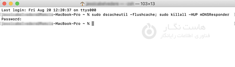 "sudo dscacheutil -flushcache;sudo killall -HUP mDNSResponder" را بدون نقل قول تایپ کنید