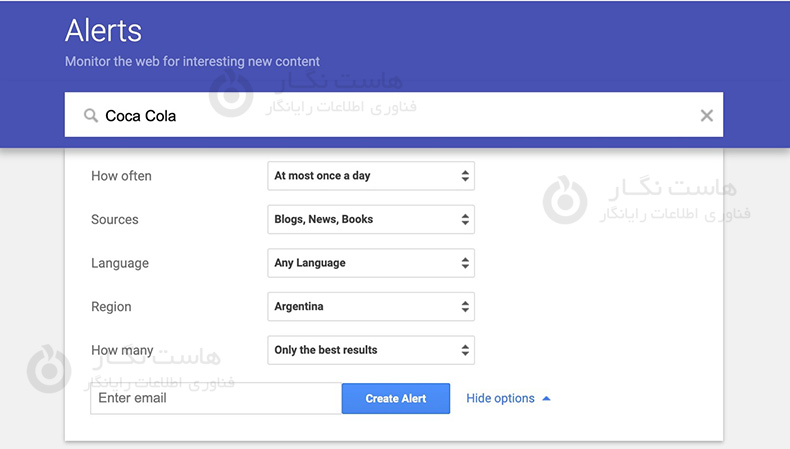 تنظیم Google Alerts به سادگی جستجو در گوگل است.