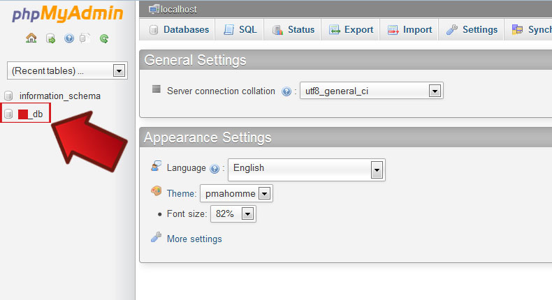 همانطور که مشاهده مي کنيد اسامي ديتابيس ها در سمت چپ صفحه قرار دارد بر روي ديتابيس مورد نظر خود کليک کنيد .