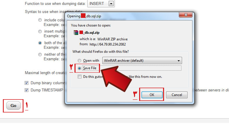 پس از انتخاب گزينه Go پنجره زیر را مشاهده مي کنيد ،براي ذخيره کردن فايل فشرده ديتابيس گزينه Save file را انتخاب کنيد .