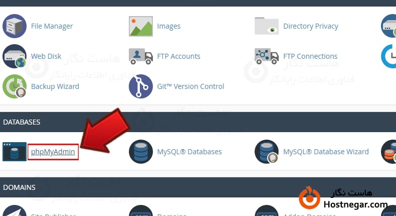 حال در صفحه اصلی cpanel در قسمت Dtabases روی گزینه php my Admin کلیک کنید .