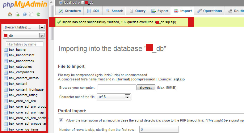 اگر کار به درستی پیش رفته باشد کادر سبز رنگ در بالای صفحه مشاهده می شود و جداول به دیتابیس افزوده می شود .