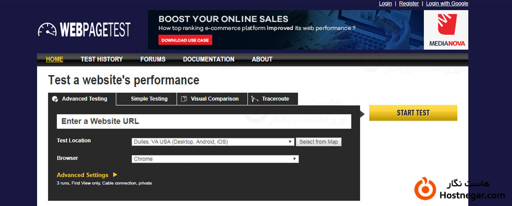 WebPagetest به شما این امکان را می دهد تا سرعت وب سایت خود را از مکان های مختلف در سراسر جهان با استفاده از مرورگر های واقعی و سرعت اتصال مصرف کننده بررسی کنید.