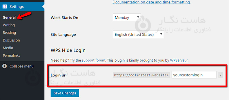 این راه سریع و آسان است زیرا راه اندازی تقریباً دو دقیقه طول می کشد. تنها کاری که باید انجام دهید این است که URL ورود جدید خود را با رفتن به تنظیمات —> WPS Hide Login مشخص کنید و افزونه بقیه موارد را انجام می دهد.