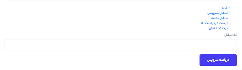 در مرحله آخر، نیز کاربری که میخواهید سرویس را برای ایشان انتقال دهید باید وارد حساب کاربری خود شده و وارد بخش انتقال سرویس به کاربر دیگر شود، در اینجا بر روی گزینه ثبت کد انتقال کلیک کند و کد دریافتی در قسمت قبل را وارد کند تا سرویس به حساب ایشان انتقال یابد.